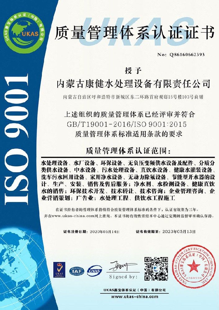 質量管理體系認證證書